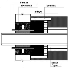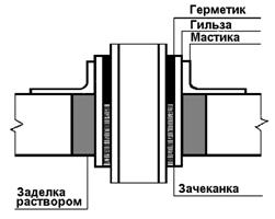 Рис. 10. Герметизация узла ввода-вывода трубопровода в здание