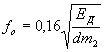 где ЕД - динамический модуль упругости материала звукоизоляционного слоя, Па, принимаемый по табл. 3.9; m1 - поверхностная плотность плиты перекрытия кг/м2; m2 - поверхностная плотность конструкции пола выше звукоизоляционного слоя (без звукоизоляционного слоя), кг/м2; d -толщина звукоизоляционного слоя в обжатом состоянии, м, определяемая по формуле: