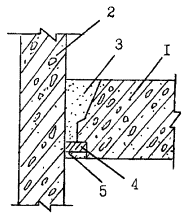 Рис. 4.2. Схема конструктивного решения узла примыкания перекрытая к стене 1 - несущая часть перекрытия; 2 - стена; 3 - монтажный бетон или раствор; 4 - герметик (уплотняющая прокладка или шнур); 5 - раствор
