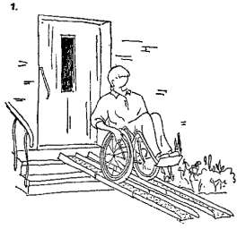 РИС. 3.10. ВАРИАНТЫ УСТРОЙСТВ ДЛЯ ПОДЪЕМА ИНВАЛИДА КОЛЯСОЧНИКА НА УРОВЕНЬ НУЛЕВОЙ ОТМЕТКИ