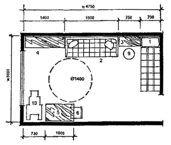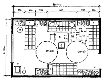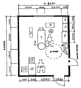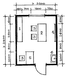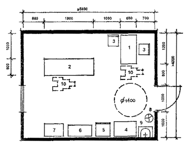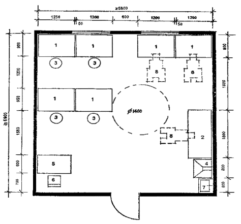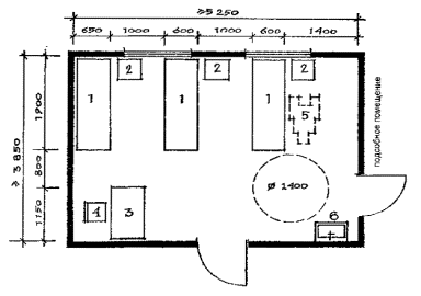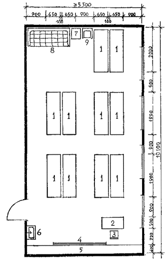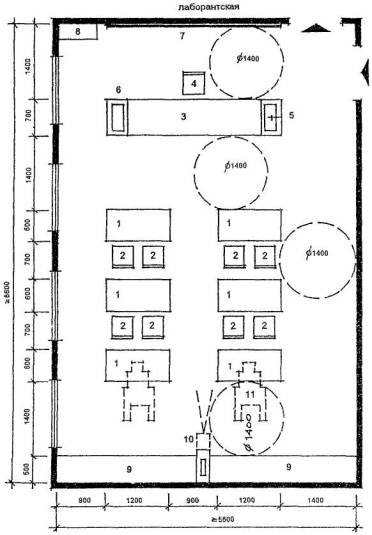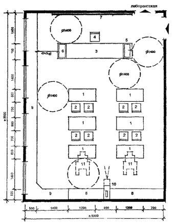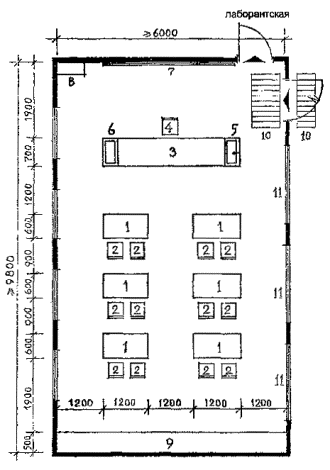 РИС. 5.7. ПЛАНИРОВОЧНАЯ СХЕМА КАБИНЕТА ФИЗИКИ, ХИМИИ НА 10 ЧЕЛОВЕК