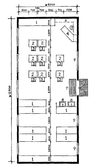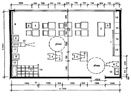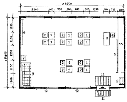 РИС. 5.13. ПЛАНИРОВОЧНАЯ СХЕМА КАБИНЕТА БИОЛОГИИ НА 12 ЧЕЛОВЕК (ДЛЯ СЛЕПЫХ И СЛАБОВИДЯЩИХ ДЕТЕЙ)