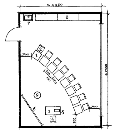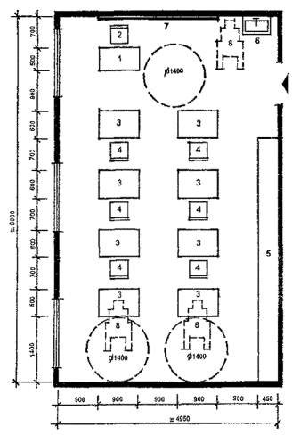 РИС. 5.11. ПЛАНИРОВОЧНАЯ СХЕМА КЛАССА МАШИНОПИСИ НА 8 ЧЕЛОВЕК