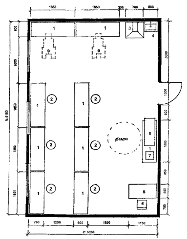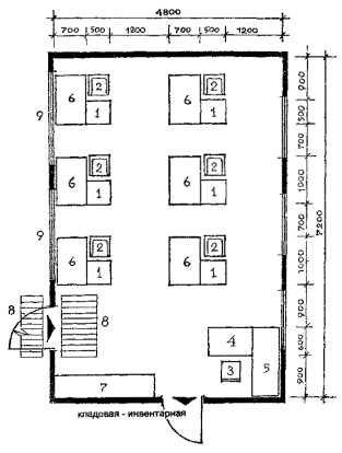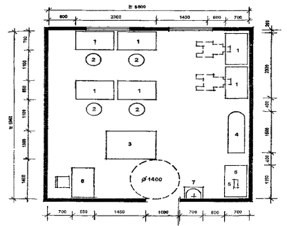 РИС. 5.8. ПЛАНИРОВОЧНАЯ СХЕМА КАБИНЕТА БИОЛОГИИ НА 10 ЧЕЛОВЕК