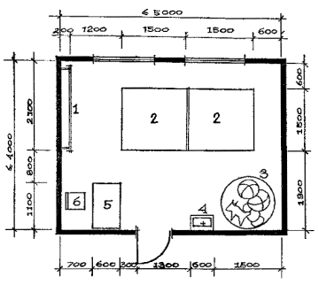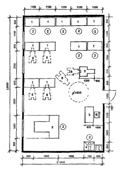 РИС. 5.4. ПЛАНИРОВОЧНАЯ СХЕМА КЛАССА НА 8 МЕСТ (ДЛЯ ГЛУХИХ И СЛАБОСЛЫШАЩИХ ДЕТЕЙ)