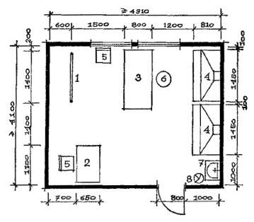РИС. 4.2. ВАРИАНТ ПЛАНИРОВКИ ГРУППОВОЙ КОМНАТЫ СПАЛЬНОЙ ЯЧЕЙКИ ДЛЯ ДОШКОЛЬНИКОВ