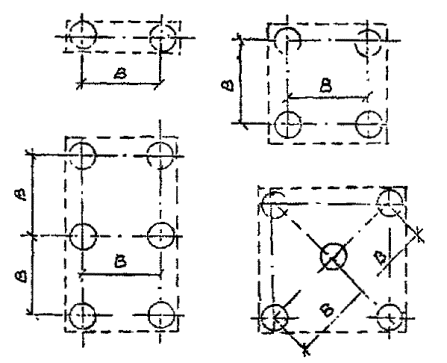 Рис. 8.3. Кустовое размещение буронабивных свай В ³ЗД при Д£0,5 м В³1 м +Д при Д>0,5 м.