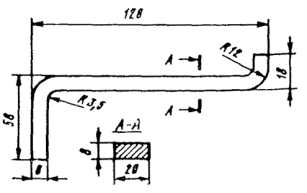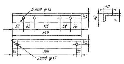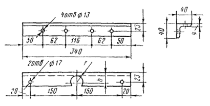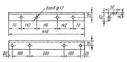 Рис. 1.8. Траверса съемная для стоек типа РСII. Рис. 1.9. Траверса съемная для стоек типа PCIII. Рис. 1.10. Траверса одноштырная ответвительная. Рис. 1.11. Хомут для крепления стойки к стропильной балке, а траверс и ступенек к стойке. Таблица 1.2 Размеры хомута для крепления стойки к стропильной балке и траверс к стойке