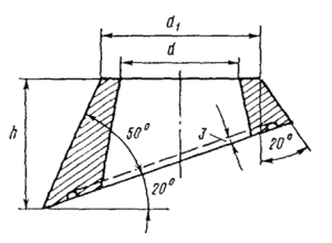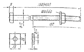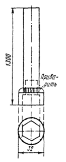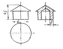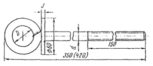1.1.9. Стойки, поступающие от изготовителя, помимо траверс и хомутов, должны быть укомплектованы: - колпачками (рис. 1.12 и табл. 1.3); - опорными кольцами (рис. 1.13 и табл. 1.3); - копытами (рис. 1.14 и табл. 1.4); - подкопытниками (рис. 1.15); - ступеньками (рис. 1.16). Примечание. Поставка копыт к стойкам не обязательна, если труба стойки устанавливается в имеющиеся на крышах стальные гильзы (стаканы). Крепление траверс на стойках типа PCI производится болтами 16×30, а на стойках типов РСII и PCIII - 16×35. Натяжение оттяжек стоек типов PCI и РСII производят стяжками, показанными на рис. 1.17, а стоек PCIII - стяжками, приведенными на рис. 1.18. Крепление оттяжек к стропильной балке осуществляют болтом, указанным на рис. 1.19; если укрепляют две оттяжки, то применяют еще серьгу (рис. 1.20). Крепление стойки к стропильной балке производят болтом (рис. 1.21). Рис. 1.12. Колпачок. Рис. 1.13. Опорное кольцо. Таблица 1.3 Размеры опорного кольца и колпачка