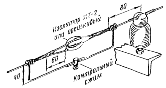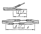1.6.16. При обрыве или коротком замыкании проводов фидеры I класса должны автоматически отключаться; для этого на станциях устанавливают специальные защитные устройства. 1.7. Соединение проводов и крепление их на изоляторах стоечных линий1.7.1. Соединение концов стальных проводов производят с помощью термитно-муфельной сварки, а биметаллических проводов - с помощью трубок. 1.7.2. Стальной провод с биметаллическим соединяют при помощи термитной сварки. 1.7.3. Концы сталеалюминиевых проводов соединяют при помощи алюминиевых трубок: провод БСА-4,3 или АС-10 - трубкой ТАС-10 длиной 250 мм; провод АС-16 или БСА-5,1 - трубкой ТАС-16 длиной 300 мм; провода АС-25 и АС-35 - трубкой длиной 400 мм. Для соединения концы проводов зачищают мелкой наждачной бумагой и вводят в трубку так, чтобы они выступали из нее на 10 мм с обеих концов. Концы трубки зажимают в струбцинах вильчатого клуппа, и ключом, устанавливаемым посередине трубки, путем поворота его по часовой стрелке трубка длиной 250 мм закручивается на два оборота (четыре полуоборота), а длиной 300 и 400 мм - на два с половиной оборота. Применение плоскогубцев для закручивания трубок запрещается. Можно закручивать трубки щипцами, делая три полных оборота по часовой стрелке одними щипцами, вторые щипцы должны оставаться неподвижными. При отсутствии алюминиевых трубок соединение выполняют следующим образом: - с концов соединяемых сталеалюминиевых проводов АС раскручивают алюминиевые проводники; - стальной сердечник соединяют спайкой; - концы раскрученных алюминиевых проводов накладывают на место спайки, соблюдая повив, а затем алюминиевой перевязочной проволокой (или алюминиевой жилой, снятой с отрезка алюминиевого провода) обматывают место соединения; чтобы обеспечить надежный электрический контакт проводов, начало и конец обмотки должны перекрывать на расстояние 2 - 3 см спайку стального сердечника. Соединение проводов марки БСА производят при помощи спайки в следующем порядке: - концы соединяемых проводов очищают напильником и наждачной бумагой до стального сердечника. Затем облуживают на длину пайки и прикладывают друг к другу: на длину 25 - 30 см при проводах диаметром 2,5 - 5 мм и на длину около 20 см при проводах диаметром 1,5 - 2,5 мм; - эти концы обматывают плотными рядами оцинкованной перевязочной проволокой диаметром 1 мм на протяжении, равном: 20 мм для проводов диаметром 1,5 мм, 40 мм для проводов диаметром 2 ÷ 3 мм, 50 мм для проводов диаметром 4,3 мм; - по обе стороны сделанной обмотки концы линейных проводов загибают под прямым углом, а обмотку перевязочной проволоки продолжают в обе стороны от загнутых концов еще вокруг одного линейного провода до шести-восьми оборотов. Загнутые концы линейного провода отпиливают так, чтобы остались загибы длиной не более 3 мм; - место соединения после обматывания проволокой смачивают лудильной водой (флюсом). Для приготовления флюса в соляную кислоту бросают кусочки цинка до тех пор, пока не прекратится выделение газа. Во избежание отравления выделяющими газами протравливание кислоты не должно производиться в закрытых помещениях. Не следует для приготовления флюса применять посуду с узким горлом (бутылки). Особенно нужно беречь при этой работе глаза от попадания в них брызг кислоты. По окончании газообразования полученный раствор хлористого цинка фильтруют через вату или в кр