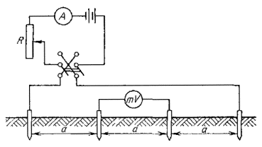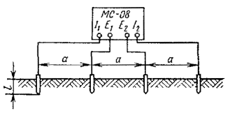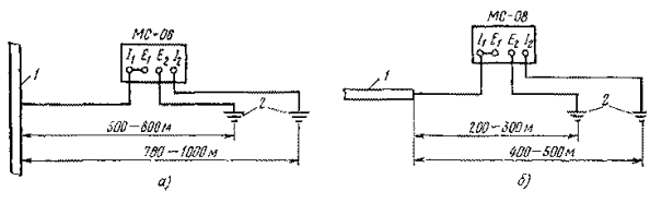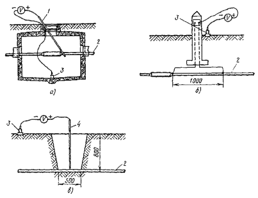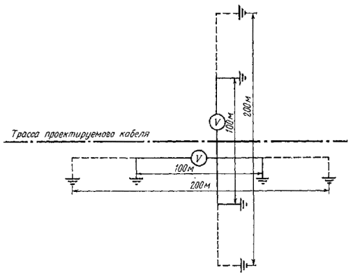 измерение удельного сопротивления грунта вблизи каждой соединительной муфты на расстоянии 1 м от кабеля перпендикулярно к нему;