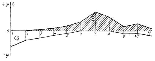 - графическое изображение средних значений потенциалов подземного металлического сооружения относительно земли, нанесенных на схему сооружения. |