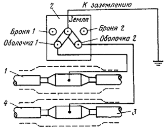 1.6. Для обеспечения защиты бронированных кабелей со свинцовыми оболочками от коррозии, электромагнитных влияний и ударов молнии соединение свинцовой оболочки с броней допускается только в контрольно-измерительных пунктах (КИП).