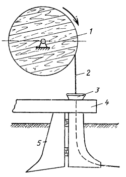 6.132. При рытье траншей экскаваторами без заякоривания (анкеровки) наибольшие продольные уклоны для обеспечения безопасности не должны превышать aпр. На уклонах более aпр необходимо производить анкеровку (при помощи бульдозера, трактора, лебедки и т.д.). 6.133. Разработка траншей на уклонах, меньших aпр, одноковшовыми экскаваторами может производиться снизу вверх или сверху вниз по склону. 6.134. На склонах более aпр для обеспечения устойчивости разработка грунта одноковшовыми экскаваторами допускается при прямой лопате только снизу вверх по склону, а при обратной лопате - только сверху вниз по склону. 6.135. Работа роторных экскаваторов во всех случаях должна производиться в направлении сверху вниз по склону (рис. 6.21). При этом ротор используется как якорь, а экскаватор может работать на склонах равных aпр, без анкеровки. Рис. 6.21. Направление движения роторного экскаватора при работе на уклоне. 6.136. Засыпку траншеи при крутизне спуска от 8 до 30° следует производить универсальными бульдозерами с поворотной лопатой продольными ходами при установке отвала под углом к продольной оси бульдозера. На склонах более 30° и в условиях, где применение механизмов невозможно, засыпка траншей и котлованов производится вручную. 6.137. На горных дорогах запрещается буксировка на гибкой сцепке. При буксировке на жесткой сцепке длина ее должна обеспечивать расстояние между транспортными средствами не более 4 м. Буксировка в период гололедицы запрещается. 6.138. Барабаны и оборудование, погруженные на автомобили, кроме упоров, должны укрепляться стальными канатами. 6.139. В горных условиях погрузка и выгрузка барабанов, цистерн НУП и других грузов должны производиться только на горизонтальных участках трассы. 6.140. Во время погрузки и выгрузки кабеля, оборудования и материалов автомобиль должен быть надежно заторможен и под его колеса должны быть подложены специальные подкладки-башмаки. Использовать в качестве упора доски или камни запрещается. 6.141. Во избежание сползания и опрокидывания бульдозеров при движении на спусках и косогорах не разрешается высоко поднимать отвал и делать резкие повороты, а при работе на полунасыпи не следует приближаться к бровке ближе 1 м. Не разрешается выдвигать нож отвала на край откоса, так как при потере упора, каким является отвал, машина может сползти под откос или опрокинуться. 6.142. При работе механизмов в горах необходимо учитывать влияние уклонов на уровень жидкости в тех или иных сосудах: на положение уровня смазки в картерах двигателей, уровня бензина и дизельного топлива в баках и др. На уклонах машины всегда следует располагать так, чтобы приемные части масляных насосов не освобождались от масла в связи с изменением уровня и могли нормально обеспечивать смазку двигателя. 6.143. При работе в горных условиях запрещается перемещение грузов на стреле подъемного крана, так как колебания груза могут вызвать опрокидывание крана. 6.144. Прокладка кабеля в горных условиях на уклонах крутизной до 10° производится так же, как на равнинной местности. На склонах крутизной более 10° прокладка должна производиться, как правило, вручную. 6.145. При прокладке кабеля ручным способом вдоль склона и на подъемах крутизной до 15° все рабочие должны находиться по одну сторону траншеи и лицом к ней, с таким расчетом, чтобы на каждого из них приходи