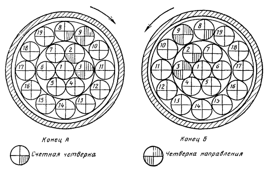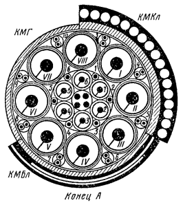 комбинированных кабелях типа КМ-8/6 номера групп обозначаются римскими цифрами