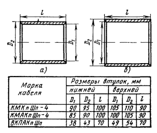 Таблица 11.2 Размеры цилиндрических свинцовых муфт с конусным окончанием типа МСк (рис. 11.1, б)
