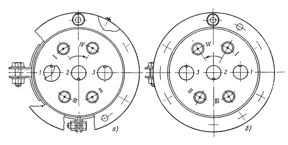 числителе- для конца А, в знаменателе - для конца Б, например: II/III, IV/V. В