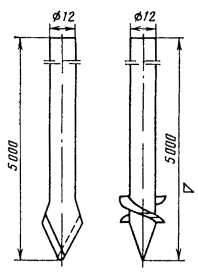 ОБОРУДОВАНИЕ ЗАЗЕМЛЯЮЩИХ УСТРОЙСТВМногоэлектродные заземлители20.14. Контуры заземляющих устройств могут быть однорядными, замкнутыми, многорядными, в виде прямой или креста. Примеры однорядных контуров показаны на рис. 20.1. Номограммы для расчета сопротивления растеканию однорядных замкнутых контуров, составленных из заземлителей из угловой стали 50×50×5 мм длиной 2,5 м (верхний конец стержней углубленна 0,5 - 0,7 м) приведены на рис. 20.2. Примеры многорядных контуров показаны на рис. 20.3, а номограмма сопротивления растеканию - на рис. 20.4. Расположение заземлителей в ряд, в форме креста и круга показано на рис. 20.5. Рис. 20.1. Однорядные контуры заземления прямоугольной конфигурации (n - число электродов в контуре, L - общая длина контура) Рис. 20.2. Номограммы сопротивления растеканию однорядных замкнутых контуров прямоугольной конфигурации без обработки грунта солью и учета коэффициента промерзания: а - при удельном сопротивлении грунта r до 1000 Ом·м; б - при удельном сопротивлении грунта r до 200 Ом·м (n - число электродов в контуре) Рис. 20.3. Многорядные контуры заземления прямоугольной конфигурации (n - число электродов в ряду; L - общая длина контура; П - число электродов в контуре) Рис. 20.4. Номограмма сопротивления растеканию многорядных замкнутых контуров прямоугольной конфигурации без обработки грунта солью и учета коэффициента промерзания (п - число электродов в контуре) Рис. 20.5. Расположение электродов заземления: а - в ряд; б - в форме креста; в - в форме круга (l - длина одиночного электрода) 20.15. В качестве заземлителей (электродов) допускается использовать угловую сталь 50×50 мм и некондиционные трубы диаметром 2 - 2,5 дюйма. Допускается прутковая сталь диаметром 15 - 16 мм, забиваемая на глубину 5 - 6 м. 20.16. Устройство заземления из одной трубы показано на рис. 20.6. Перед вбиванием электродов заземляющего устройства в грунт к каждому из них должна быть приварена или припаяна стальная проволока диаметром 4 - 5 мм Приварка или припайка проволоки к трубке (уголку) может производиться следующим образом: на расстоянии 50 и 80 мм от края в трубе или поле уголка просверливают сквозные отверстия, наружную поверхность трубы (уголка) на длине примерно 30 мм по обе стороны верхнего отверстия очищают и залуживают, конец проволоки на длине 100 см залуживают и пропускают через верхнее отверстие в трубе (уголке) на длину 50 см; залуженной частью проволоки делают пять оборотов вокруг трубы (уголка) по обе стороны верхнего отверстия, верхний конец проволоки закрепляют хомутом из проволоки диаметром 2 мм, а нижний конец пропускают через нижнее отверстие и загибают; место соединения проволоки с трубой тщательно приваривают или пропаивают и покрывают асфальтовым лаком или каким-либо другим кислотоупорным составом. Рис. 20.6. Устройство заземления из одной трубы: 1 - труба стальная; 2 - конец трубы смят; 3 - проволока стальная диаметром 4 - 5 мм; 4 - хомутик из перевязочной проволоки диаметром 2 мм; 5 - витки пропаять.