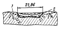 Рис. 114. Поперечное сечение туннеля с эпюрой остаточных напоров при наличии противофильтрационной цементации и разделительной зоны: 1 - бетонная обделка; 2 - зона цементации; 3 - разделительная зона; 4 - дрена продольная; 5 - уровень грунтовых вод; 6 - эпюра остаточных напоров на контакте обделки с породой. Приложение 2ЗАВИСИМОСТЬ КОЭФФИЦИЕНТА ФИЛЬТРАЦИИ ПОРОДЫ ОТ УДЕЛЬНОГО ВОДОПОГЛОЩЕНИЯ1. Интервал нагнетания расположен ниже уровня грунтовых водПри фильтрационных расчетах, когда необходимо производить пересчеты от удельного водопоглощения породы q, л/мин×м2 к ее коэффициенту фильтрации k, м/сутки, можно пользоваться данными, приведенными в табл. 14 [Л. 52], которые получены из совмещенных опытов по откачкам и нагнетаниям в водонасыщенных породах.