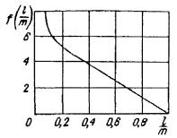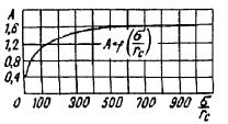 Значения f(l/(2T)) находятся по графику (рис. 82), приняв l/m = l/(2T). Рис. 82. График для нахождения функции f(l/m). Рис. 83. График для определения величины A = f(σ/rc). Депрессионную кривую в плоскости, нормальной к линейному ряду и проходящей через ось любой из дрен, можно построить по уравнению С.Ф. Аверьянова Hx = H - S(1 - x/R)αβ', (7) где Hx - напор (над подошвой водопроницаемого слоя) в точках, отстоящих на расстоянии x от плоскости, проходящей через оси скважин;