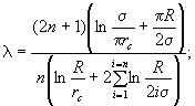 h0 - высота столба воды в скважинах ряда (считая от подошвы пласта). Сниженный уровень подземных вод посередине между скважинами находится по формуле С.Ф. Аверьянова Ha = H - S(1 - 0,22(2σ/R))αβ'. (8) Водопонижающее действие рядов бесконечной длины больше, чем рядов конечной длины. Поэтому для перехода к линейным рядам конечной длины в расчеты следует вводить коэффициент короткости λ (т.е. отношение расхода короткого ряда nQ1кор к расходу длинного nQ1дл), равный при числе дрен n в коротком ряду: нечетном