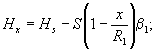 где S - понижение напора воды в дрене; m0 - глубина вскрытия дреной водоносного пласта; T - расстояние от подошвы водоносного пласта до дна дрены; b - ширина дрены; L = R1 + R2. Рис. 90. Схема к расчету длинной прямолинейной горизонтальной дрены, расположенной у кровли напорного пласта, на неодинаковых расстояниях от границ питания и стока. Пьезометрическая кривая в плоскости, нормальной к дрене, строится по формуле С.Ф. Аверьянова: в сторону области питания в сторону области стока где x - абсцисса искомой точки кривой (рис. 90); Hs = T;