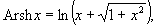 Arsh - обратный гиперболический синус, определяемый по таблицам или вычисляемый по формуле
