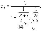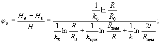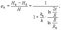 Пример расчета 2. Двухслойная среда: бетонная обделка-порода. Приняв 2R0 = 5,30 м, 2R = 6,65 м и различные значения t, а также различные соотношения коэффициентов фильтрации бетона и породы, по формуле (94) определяются значения φб (табл. 10).
