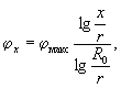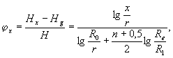 Величина относительного напора на внешней поверхности обделки в расстоянии x от оси ближайшей дрены определяется по формуле