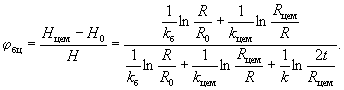 при r ≤ x ≤ R0. Остаточный относительный напор φb на внешнем контуре обделки и в точках b, равноотстоящих от двух соседних дрен, будет иметь максимальное значение. Для определения его величины по формуле (119) вместо x следует подставить R0. 2°. Полагаем, что R0 ≥ Rцел - R. (120) Введем обозначение: R3 = Rцел - R. (121) Для расчета расхода и относительных напоров имеем следующие формулы [Л. 119]: