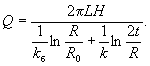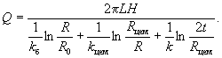 Пример расчета Приняв R = 2,5 м, L = 5 м, r = 50 мм, t = 100 м, определив R0 = 2,5 м, Re = 200 м и по табл. 6 J = 0,456, после подстановки в формулу (76) находим