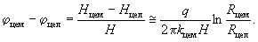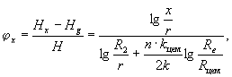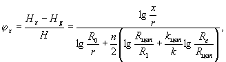 Для области практически радиального фильтрационного потока, заключенной между поверхностями цилиндров с радиусами Rцел и Re, градиент напора J в точке, находящейся на расстоянии х от оси туннеля (шахты), определяется по формуле