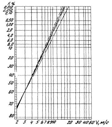 В точках 5 и 0, лежащих на реальном или условном откосе на глубине d = 0,5λ, скорость движения воды принимается равной нулю. Приложение 2Справочное ПРИМЕР ОПРЕДЕЛЕНИЯ РАСЧЕТНЫХ СКОРОСТЕЙ ВЕТРА ПО ДАННЫМ СРОЧНЫХ НАБЛЮДЕНИЙ НА ГИДРОМЕТЕОСТАНЦИЯХПервичные материалы для определения расчетного ветра - таблицы срочных наблюдений - хранят непосредственно на гидрометеостанциях и в архиве Центральной гидрометобсерватории ВНИИГМИ МЦД. Кроме того, обработанные в требуемую табличную форму материалы наблюдений за ветром имеются на опорных гидрометео- и метеостанциях с начала наблюдений на них до 1965 г., опубликованные в «Справочнике по климату СССР, ч. III. Ветер». После 1965 г. данные по ветру (срочные наблюдения) по опорным гидрометео- и метеостанциям публикуются в ежемесячниках Гидрометцентра СССР. При Центральной гидрометобсерватории (ЦГМО) имеется Бюро расчетов и справок (БРиС), которое выполняет обработку в требуемую табличную форму гидрометданных по заказам заинтересованных организаций. В качестве примера определим расчетную скорость ветра для мостового перехода через большую реку. Для определения расчетных скоростей ветра взяты данные многолетнего ряда срочных наблюдений за ветром по ближайшей авиационной метеорологической станции за 1936 - 1960 гг. За период возможного волнообразования приняты месяцы (апрель, май, июнь), в течение которых в современных условиях проходит пик половодья на данной реке. Статистический ряд повторяемости градаций ветра по скорости ветра и по направлению за каждый из трех указанных месяцев приведены в табл. 1. Таблица 1