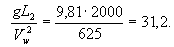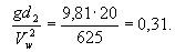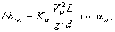 где aw - угол между продольной осью водоема и направлением ветра, град; L - разгон по направлению расчетного ветра, м; Kw - коэффициент, принимаемый для скорости ветра 20 м/с - 2,1 × 10-6; 30 м/с - 3,0 × 10-6; 40 м/с - 3,8 × 10-6; 50 м/с - 4,8 × 10-6; Vw - расчетная скорость ветра, м/с, принимаемая 2 %-ной обеспеченности (1 раз в 50 лет) при определении нагона для сооружений I и II классов и 4 %-ной обеспеченности (1 раз в 25 лет) для сооружений III и IV классов. Пример. Необходимо определить высоту ветрового нагона у затопляемой автодорожной насыпи, укрепляемой защитными покрытиями IV класса капитальности. Скорость расчетного ветра 4 %-ной обеспеченности 20 м/с, длина разгона от укрепляемой насыпи до границы затопления поймы реки при расчетном уровне L = 1900 м, угол между нормалью к оси насыпи и направлением ветра a = 20° (cos 20° = 0,9397), средняя глубина на пойме вдоль разгона d = 3,8 м. Тогда