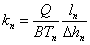 где В - ширина рабочей камеры лотка; ln - средняя длина участка (отсека); Тп - средняя высота отсека, ограниченная депрессионной поверхностью потока; Dhn - изменение напора по длине отсека.