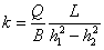 Коэффициент фильтрации всей испытываемой засыпки (образца) грунта можно вычислить, используя формулу Дюпюи: