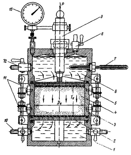 Грунт надо укладывать в прибор отдельными слоями, подвергая его легкому уплотнению трамбованием, а около стенок камеры - штыкованием (чтобы здесь не осталось крупных, так называемых пристенных пор).