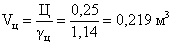 Определяем объем цемента, принимая g = 1,14 т/м3:
