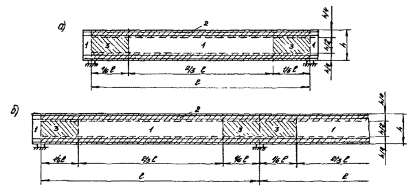 2.3.6. В клепаных балках со сплошной стенкой можно условно выделить три зоны влияния дефектов на грузоподъемность балки (рис. 3). Дефекты, вызывающие ослабление сечения в зоне I (заопорной части пролетного строения и средней части стенки при отсутствии повреждений в ребрах жесткости), не оказывают существенного влияния на несущую способность балки, поэтому при оценке грузоподъемности их можно не учитывать. Такие же дефекты, образовавшиеся в зоне 2 (пояса балок), учитывают при расчете ослабленного сечения поясов по изгибающему моменту, а в зоне 3 (приопорные участки стенки) - при расчете стенки на поперечную силу. Дефекты, ослабляющие сечения в зоне I сварных балок, также практически де снижают грузоподъемность, но являются опасным очагом для дальнейшего развития дефекта в зонах 2 и 3 (в виде трещин), поэтому их устраняют в короткие сроки. 2.3.7. Механические повреждения выявляют также при визуальном осмотре элементов. При обнаружении дефектов производят их измерение с помощью линейки и штангенциркуля и вычисляют величину ослабления сечения элемента. Если в результате механического воздействия произошли изгибы или искривление профиля элемента без образования трещин, разрыва, пробоин в металле, то такое повреждение является наиболее опасным для сжатых и сжато-растянутых элементов, так как оно может снизить их устойчивость и грузоподъемность. Учитывать возможность снижения грузоподъемности этих элементов следует при измеренной стреле изгиба более 1/500 длины хорды (рис. 4), а в составных сечениях при искривлении одной ветви - при стреле более 1/300 длины хорды этой ветви. Все деформированные края листа или полки уголка, а также вмятины со стрелой изгиба более 1/100 длины хорды рассматривают как ослабление сечения, а в расчетную площадь включают только недеформированную часть. Рис. 3. Зоны влияния дефектов в балках со сплошной стенкой: Рис. 4. Искривление элемента: а - сплошного сечения; б - составного -"- ; f - стрела выгиба, мм; L - длина искривленной части элемента в рассматриваемой плоскости 2.3.8. При оценке состояния металлического элемента следует учитывать, что в клепаных конструкциях трещины, пробоины, разрывы и коррозия металла, а также его деформация, ослабляют сечение только той детали (уголка, листа) элемента, в которой образовался дефект, а в сварных конструкциях - всего сечения элемента (балки, раскоса, пояса, стойки и т.д.). Поэтому в клепаных конструкциях в таких случаях производят ремонт детали, а в сварных - целого элемента. 2.3.9. Все элементы, имеющие ослабление сечений более 2%, следует проверять расчетом. Для этого определяют их грузоподъемность с учетом ослабления сечений по формулам: