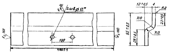 Рис. 4. Резиновый компенсатор К8 (резина марки 7НО-68-1, № 26-82). Требования к компенсатору: 1. Резиновые компенсаторы должны иметь толщину не менее 7 мм. На поверхности резины не должно быть раковин, разрывов и непровулканизированных участков; 2. Допускаемые отклонения - +1 мм; 3. Резиновые компенсаторы предусмотрены без стыков на всю длину шва. При необходимости компенсаторы стыкует на заводе в переносных вулканизаторах