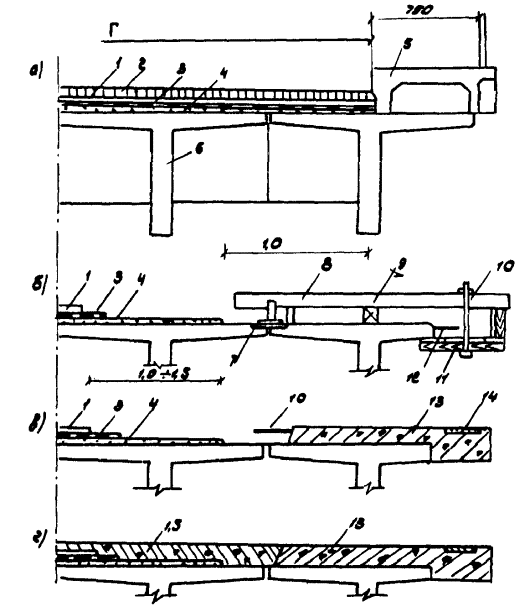 Примечание. 1 - обозначения по п. 2.4.1; 2 - обозначения по п. 2.4.2. ЛИТЕРАТУРА2. Временные рекомендации по проектированию уширения автодорожных мостов ВР-218 УССР. - Киев, 1979. 7. Инструкция по проведению осмотров мостов и труб на автомобильных дорогах. ВСН 4-81. - М.: Транспорт, 1981. 8. СНиП II-17-77. Нормы проектирования. Свайные фундаменты. - М.: Стройиздат, 1978. 9. ГОСТ 23457-79. Технические средства организации дорожного движения. Правила применения. 1979. 12. СНиП 2.05.03-84. Мосты и трубы. Госстрой СССР/ЦИТП Госстроя СССР. - М., 1985. - 200 с. 13. Инструкция по проектированию и установке полимерных опорных частей мостов. ВСН 86-83 / Минтрансстрой. - М., 1938. - 32 с. 15. СНиП III-43-75. Мосты и трубы. Правило производства и приемки работ / Госстрой СССР. - М.: Стройиздат, 1976. - 110 с. 17. Инструкция по устройству гидроизоляции конструкций мостов и труб на железных, автомобильных и городских дорогах. ВСН 32-81. - М., 1982. - 112 с. 20. Рекомендации по расчету опор автодорожных мостов / ЦНИИС Минтрансстроя СССР. - М., 1981. 21. Указания по определению экономической эффективности капитальных вложений в строительство и реконструкцию автомобильных дорог. ВСН 21-83. - М.: Транспорт, 1985. СОДЕРЖАНИЕ