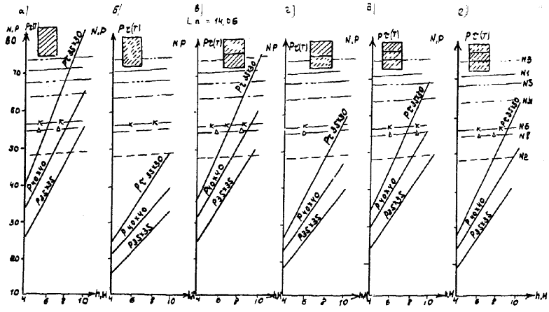 Рис. Е.6. Свайный устой. Вып. 70 L =14,06 м ¾ Г7 + 2´0,75 ® Г8 + 2´1,0 nсв = 5 -- Г7 + 2´0,75 ® Г8 + 2´1,0 nсв = 7 -×- Г7 + 2´0,75 ® Г10 + 2´1,5 -x- Г7 + 2´0,75 ® Г11,5 + 2´1,5 -D- Г8 + 2´0,75 ® Г10 + 2´1,5 Рис. Е.7. Свайный устой. Вып. 70 L = 16,76 м ¾ Г7 + 2´0,75 ® Г8 + 2´1,0 nсв = 5 -- Г7 + 2´0,75 ® Г8 + 2´1,0 nсв = 7 -×- Г7 + 2´0,75 ® Г10 + 2´1,5 -x- Г7 + 2´0,75 ® Г11,5 + 2´1,5 -D- Г8 + 2´0,75 ® Г10 + 2´1,5 Рис. Е.8. Козловый устой. Вып. 143-144 L =11,36 м ¾ Г7 + 2´0,75 ® Г8 + 2´1,0 nсв = 5 -- Г7 + 2´0,75 ® Г8 + 2´1,0 nсв = 7 -×- Г7 + 2´0,75 ® Г10 + 2´1,5 -x- Г7 + 2´0,75 ® Г11,5 + 2´1,5 -D- Г8 + 2´0,75 ® Г10 + 2´1,5