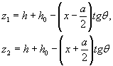 и с ординатой на глубине h от этой точки
