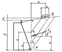 Силу Еq от нагрузки q, расположенной на призме обрушения и распределенной по ширине а (рис. 8), определяют по формуле