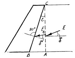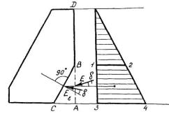 где Е - сила давления грунта на фиктивную вертикальную грань АС. Точку приложения силы