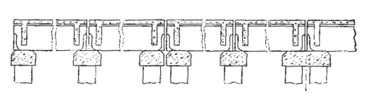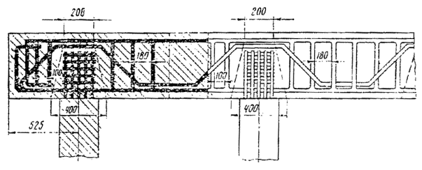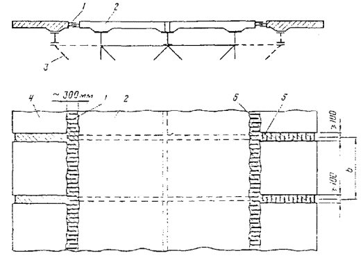 Рис. 6.1. Объединение балок монолитной накладной плитой с консольными свесами Рис. 6.2. Исходная схема секционного моста с возможными дефектами в виде сколов торцов балок Рис. 6.3. Схема секционного моста после реконструкции