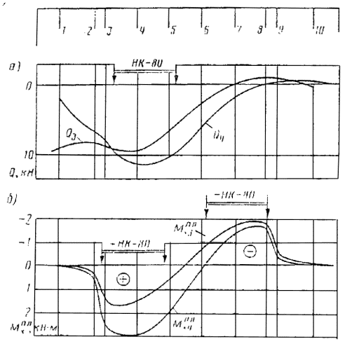 Таблица 10. W4, М4, Q4 от нагрузки НК-80 qэкв/2=56,5 кН/м