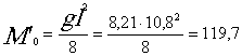 Изгибающий момент в середине пролета отдельного элемента уширения от сил предварительного напряжения MII0 = -V0e0 = -840·0,23= -193,2 кН·м. Изгибающий момент от второй части постоянной нагрузки по формуле (21)