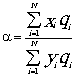 где с - расстояние от центра тяжести перевозок до дальней границы района тяготения, км; L - протяженность района тяготения, км. 1.4. Показатель геометрической характеристики района тяготения моста представляет собой соотношение средневзвешенных значений абсцисс и ординат корреспондирующих пунктов в прямоугольной системе координат, начало координатных осей которой совпадает с центром тяжести перевозок, спроектированным на ось водной преграды. Он определяется по формуле