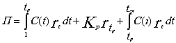 где С(t) - транспортно-эксплуатационные расходы в t-м году эксплуатации моста тыс. руб.; tp - срок эксплуатации моста до уширения (год реконструкции) (tp - 1, 2,…,tсл); tсл - срок службы моста, лет. 2.4. При возможности многостадийной реконструкции моста следует рассматривать варианты и одностадийного уширения. При этом принимают, что реконструкция первой стадии уширения осуществляется в данный момент, а срок проведения реконструкции 2-й и последующих стадий определяется расчетным путем. Наилучший вариант определяют по минимуму приведенных затрат: